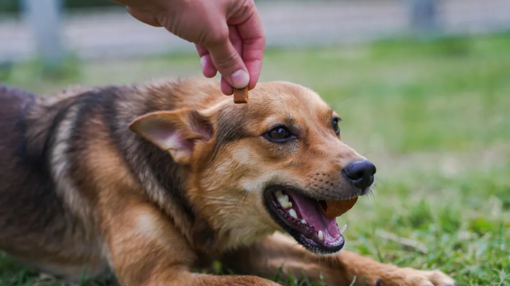 - Entrega el premio inmediatamente en esa posición (en el suelo, no hagas que se levante para comer).