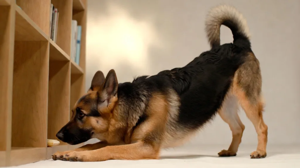 Los perros novatos suelen buscar solo a ras de suelo. Empieza a esconder premios en superficies elevadas: en el asiento de una silla, sobre un rodapié bajo o en el estante inferior de una mesa. Esto abre un mundo en 3D para su cerebro.